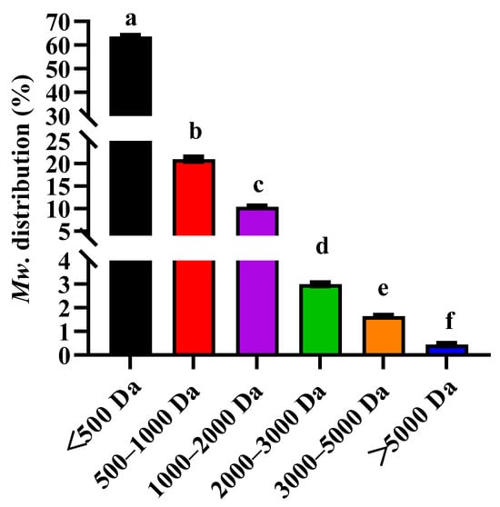 Molecular weight distribution of SCH. Letters correspond to significant difference (p < 0.05) (n = 3). SCH: sea cucumber hydrolysates.