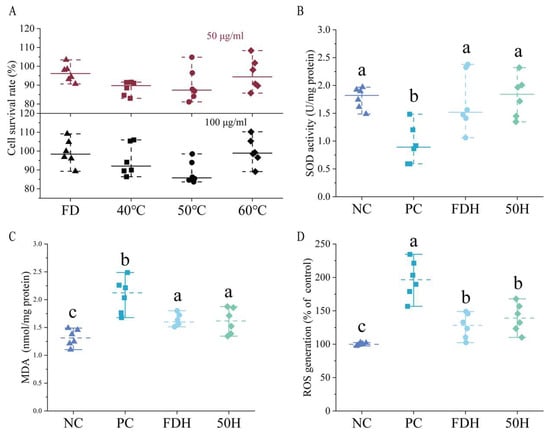 50H: Pretreated with 100 μg/mL 50 °C hot-air drying HCT extract (Pretreatment such as FDH) 1 h before H2O2 exposure.