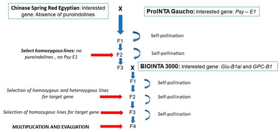 Lines with the desired gene stack for pasta production were developed following the breeding scheme outlined in Figure 1.