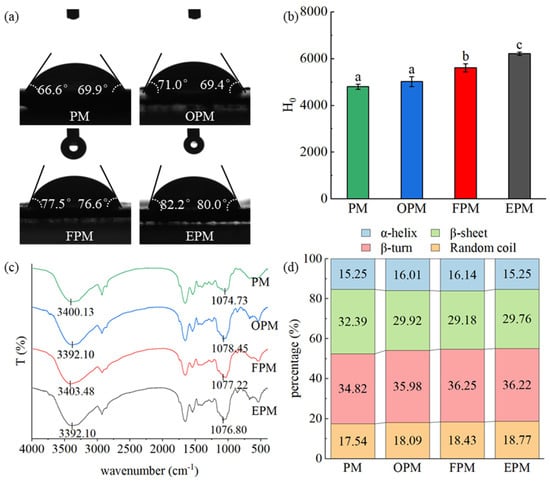 - Zhu, T.; Ma, L.; Jiang, H.; Li, W.; Guo, X.; Yang, C.; Bu, G. Functional, structural properties of pea protein isolate-xylooligosaccharide glycosylated conjugate and its application in O/W emulsion preparation. J. Food Meas. Charact. 2023, 17, 6135–6143. [Google Scholar] [CrossRef]