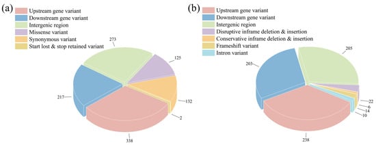 Results of different SNPs (a) and InDels (b) annotations between original and lactic acid-tolerant strains.
