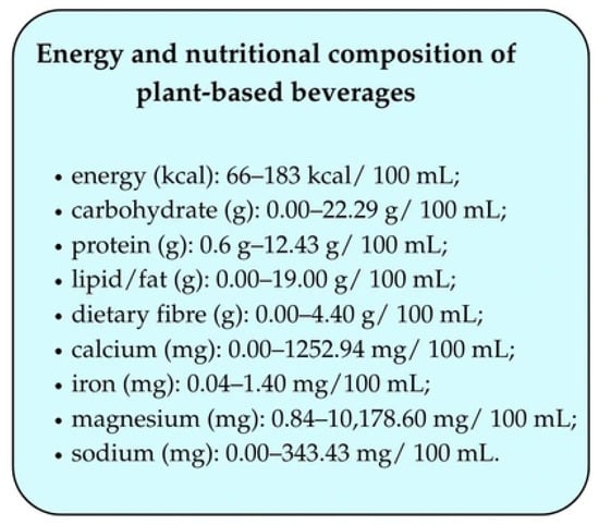 The energy and nutritional composition of plant-based beverages is shown in Figure 2 [24].