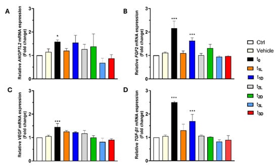 The effects of phenolic extracts from EVOO on HUVEC angiogenesis were also investigated. The results of RT-qPCR analysis showed that only Angiopoietin-like protein 2 (