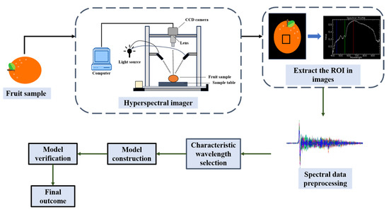 - Hasanzadeh, B.; Abbaspour-Gilandeh, Y.; Soltani-Nazarloo, A.; Hernández-Hernández, M.; Gallardo-Bernal, I.; Hernández-Hernández, J.L. Non-destructive detection of fruit quality parameters using hyperspectral imaging, multiple regression analysis and artificial intelligence. Horticulturae 2022, 8, 598. [Google Scholar] [CrossRef]