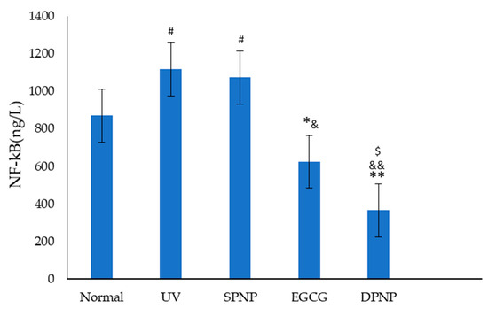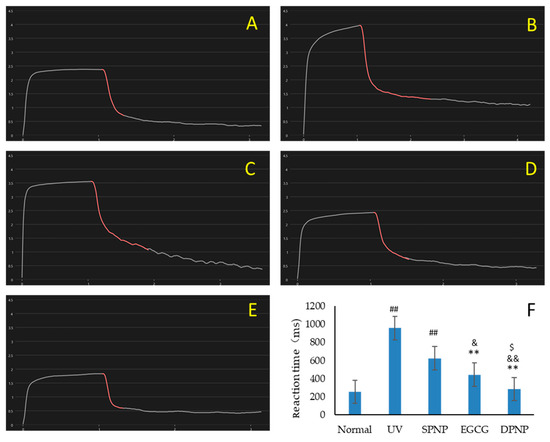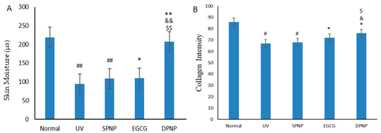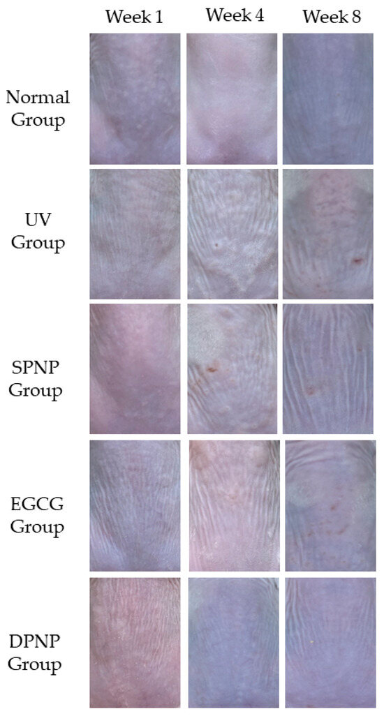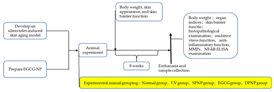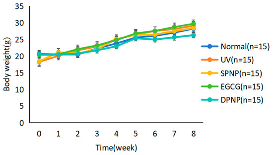 | DPNP | 15 | UV irradiation for 5 min + oral gavage with 0.11 mL/10 g EGCG nanoparticle solution (1 mg/mL) once daily for 8 weeks |