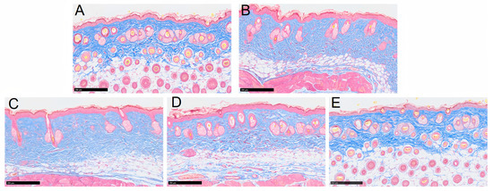 - Moloney, S.J.; Edmonds, S.H.; Giddens, L.D. The hairless mouse model of photoaging: Evaluation of the relationship between dermal elastin, collagen, skin thickness and wrinkles. Photochem. Photobiol. 1992, 56, 505–511. [Google Scholar] [CrossRef]