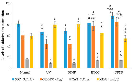 3.6. Effects of EGCG-NPs on Oxidative Stress Function of Skin