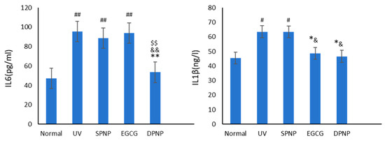 3.7. Effects of EGCG-NPs on Anti-Inflammatory Function of Skin