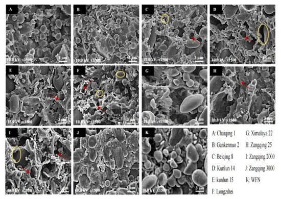 - Huang, Y.; Lai, H. Noodle quality affected by different cereal starches. J. Food Eng. 2010, 97, 135–143. [Google Scholar] [CrossRef]