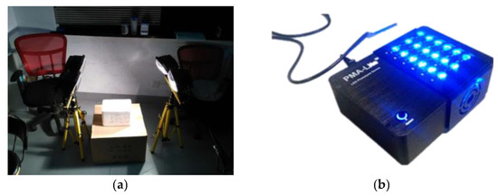 Conventional PMA treatment. (a) Halogen lamp; (b) Commercial PMA treatment device.