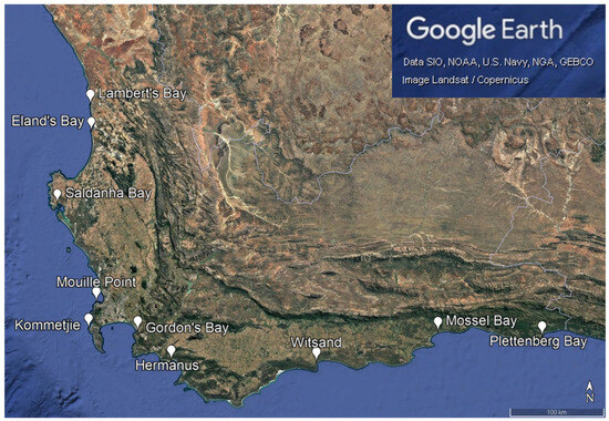 There have been a small number of local studies on POP contamination in mussels. These studies tend to focus on one or two contaminant classes at a time, e.g., PCBs [39,40] or PAHs and PCBs [41], and almost all the research has been conducted within harbours or enclosed bays [39,42,43]. The small amount of available research on POPs in local mussels has found them to be ubiquitous along the South African coastline, though contamination levels are typically lower than those detected in mussels from more industrialised nations [4,6]. Gaps in local research therefore include a lack of data on the POP contamination status of wild shellfish, a dearth of Human Health Risk Assessments on local marine species, a lack of POP testing outside of harbours, and the absence of broad-scale testing for a wide range of POP contaminants.