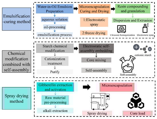 In recent years, emulsion technology has offered a promising approach to enhance starch functionality by constructing oil–water dispersion systems using interfacial stabilizers. This technique not only imparts interfacial activity to starch through chemical modifications (e.g., esterification and etherification), but also inhibits retrogradation via physical oil-phase barriers [7,8]. Additionally, cross-linking and composite encapsulation strategies have greatly improved starch’s environmental stability, making it suitable for challenging applications such as acidic beverages and thermally sterilized foods. More importantly, emulsion technology has expanded the functional versatility of starch by enabling the incorporation of active ingredients for targeted delivery and the development of intelligent, stimuli-responsive materials.
