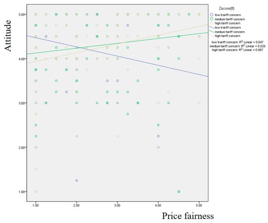 Tariff concern significantly moderates the relationship between price fairness and attitude.