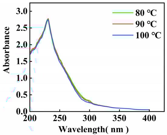 Gelatin UV absorption spectra changed little with extraction temperature, the UV absorption peaks of gelatin at different extraction temperatures are essentially at the same wavelengths, and only the peak sizes are slightly different. These findings indicate that the main absorption characteristics of gelatin in the ultraviolet region are relatively stable and that the extraction temperature has a limited influence on it.
