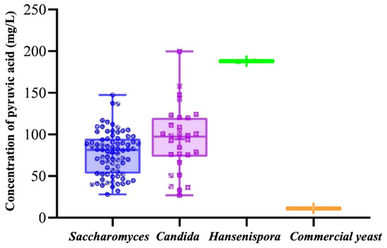 Figure 1. Distribution of pyruvate acid content in fermentation broth among different species.