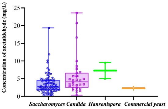 Figure 2. Distribution of acetaldehyde content in fermentation broth among different species.
