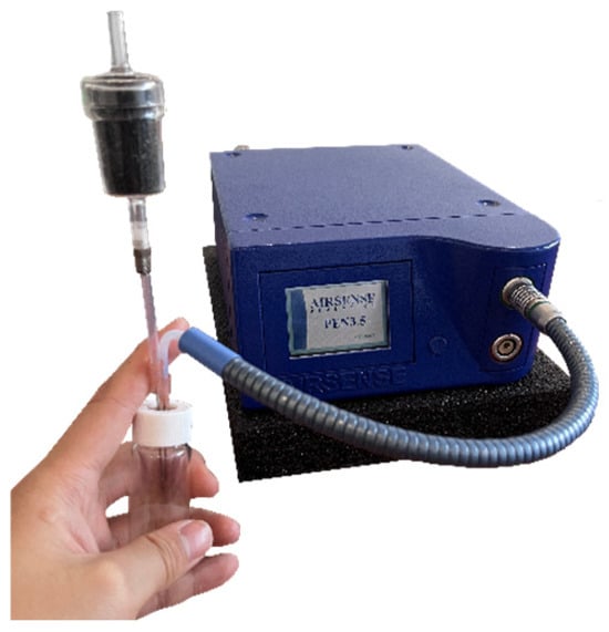 The E-Nose analysis was conducted using a commercial E-Nose (PEN3, Airsense Analytics GmbH, Schwerin, Germany, Figure 3) with 10-MOS sensors to acquire the volatile compound profile of the ham samples. The details of the MOS sensors are shown in Table 3 [24].