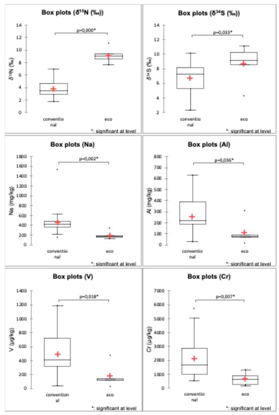 - Schmidt, H.L.; Rossmann, A.; Voerkelius, S.; Schnitzler, W.H.; Georgi, M.; Grassmann, J.; Zimmermann, G.; Winkler, R. Isotope Characteristics of Vegetables and Wheat from Conventional and Organic Production. Isot. Environ. Health Stud. 2005, 41, 223–228. [Google Scholar] [CrossRef]
