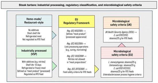 Regulatory framework and microbiological safety criteria for industrial steak tartare in the EU and UK.