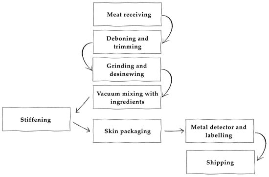 Flow diagram of the steak tartare processing and packaging workflow (adjusted from Eurocarni []).
