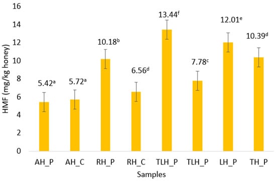 - Althaiban, M.A. Investigation of Hydroxymethylfurfural Levels in Commercial Acacia Honey for Quality Control: A Systematic Review. Discov. Appl. Sci. 2024, 6, 515. [Google Scholar] [CrossRef]