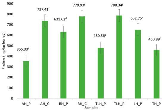 - da Costa, I.F.; Toro, M.J.U. Evaluation of the Antioxidant Capacity of Bioactive Compounds and Determination of Proline in Honeys from Pará. J. Food Sci. Technol. 2021, 58, 1900–1908. [Google Scholar] [CrossRef]