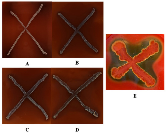 For β-hemolysis analysis, 5% (v/v) sheep blood (No. TX0030, Beijing Solarbio Science & Technology Co., Ltd., Beijing, China) was added to MRS agar. The plates were incubated at 37 °C for 48 h, followed by cold shock treatment at 4 °C for 24 h. Hemolytic activity was determined by observing clear zones of lysis around bacterial colonies on the blood-supplemented MRS agar plates. For positive validation, Virgibacillus halodenitrificans was included in the assay [27].