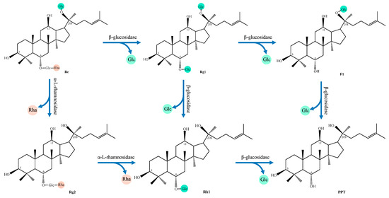 - Hu, Y.B.; Wang, N.; Yan, X.C.; Yuan, Y.; Luo, F.; Jiang, Z.Y.; Zhou, Y.F. Ginsenoside Re impacts on biotransformation products of ginsenoside Rb1 by Cellulosimicrobium cellulans sp. 21 and its mechanisms. Process Biochem. 2019, 77, 57–62. [Google Scholar] [CrossRef]