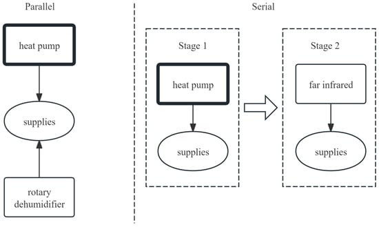 The concept comparison diagram of series vs. parallel combined drying technology.