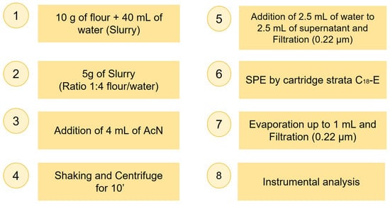 To represent a scenario as realistic and diverse as possible, samples were randomly selected using the most common brands intended for the preparation of typical savory and sweet recipes for human consumption (Table 1). Ten samples of maize flour, all Italian in origin, were analyzed; these were made available by the Italian National Institute of Health (ISS) or, otherwise, purchased from supermarkets.
