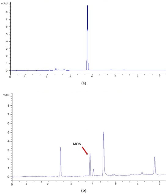 All blank samples analyzed using CE-DAD and HPLC-MS/MS showed no interfering peaks at the retention or migration time of MON, confirming the high selectivity of these methods in contrast to HPLC-UV reported in Figure S1b.