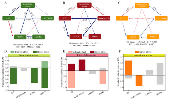 However, in Glu20, the effects of ATP and NAD+/NADH on QSRGs and AMRGs were not significant, probably due to the high concentration of acetate (intracellular/extracellular) (Figure 3C,F).