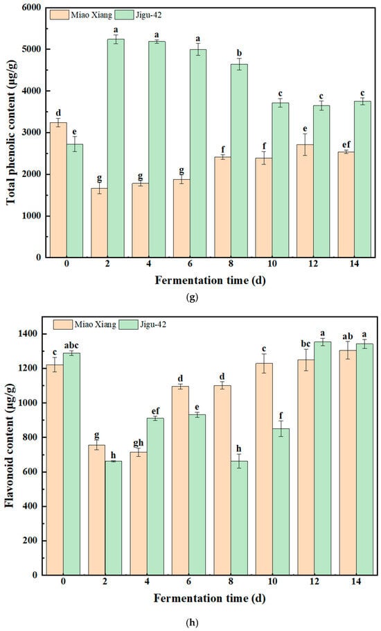 3.2.4. Analysis of the Changes in the Levels of Polyphenols and Flavonoids
