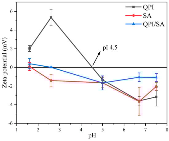 3.1. Characterization of Quinoa Protein/Sodium Alginate Complexes (QPI/SA)