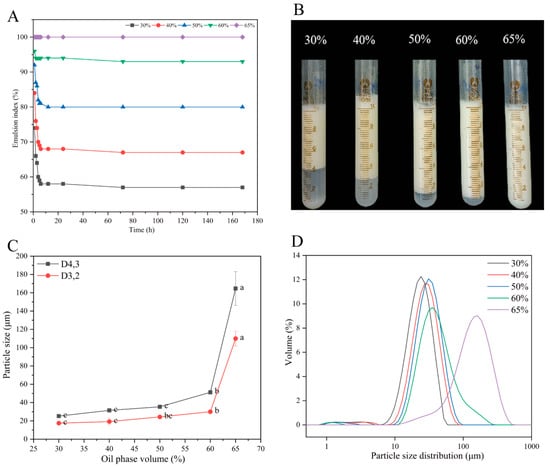3.2.3. Influence of Oil-Phase Volume Fraction on Pickering Emulsion Stability