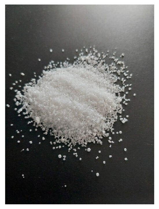 A relatively new trend in food technology is the use of micronized salt (powdered salt, ground salt). The micronization process involves crushing salt particles (usually mechanically). So far, this process has most often been used in the pharmacy. Depending on the device and the process parameters used, very fine (10–100 µm), superfine (1–10 µm), and ultrafine (0.1–1 µm) particles can be obtained [25]. Micronized salt is available on the market, but there is no clear definition that specifies the maximum sizes of particles in such salt. In scientific studies [26,27], to obtain micronized salt, scientists used 60-mesh sieves. The size of the sieved crystals was less than 250 µm.