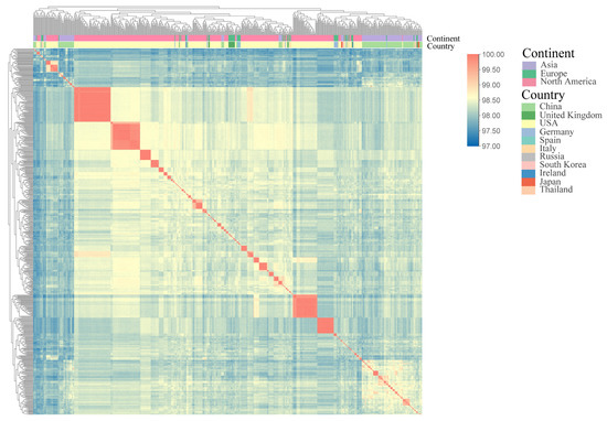 ANI is a robust indicator for assessing genomic correlations among bacterial species, with a generally accepted species-delineation threshold between 95 and 96% [24]. In the present study, the ANI values among all B. adolescentis isolates exceeded 97%, and the ANI values relative to the type strain B. adolescentis ATCC 15703T averaged 97.87% ± 0.12%. Thus, all isolates analyzed in this study belonged to B. adolescentis. A clustering heatmap of the isolates revealed evident geographical clustering patterns, indicating regional genomic variations among isolates from different geographical locations (Figure 2).