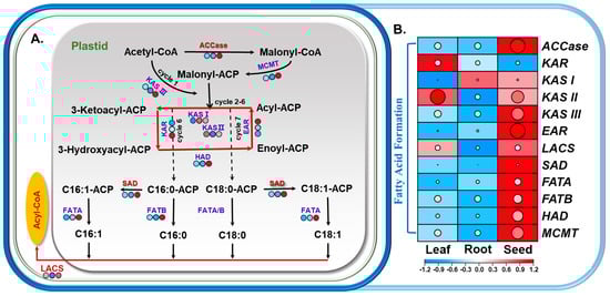 - Beisson, F.; Koo, A.J.K.; Ruuska, S.; Schwender, J.; Pollard, M.; Thelen, J.J.; Paddock, T.; Salas, J.J.; Savage, L.; Milcamps, A.; et al. Arabidopsis genes involved in acyl lipid metabolism. A 2003 census of the candidates, a study of the distribution of expressed sequence tags in organs, and a web-based database. Plant Physiol. 2003, 132, 681–697. [Google Scholar] [CrossRef]