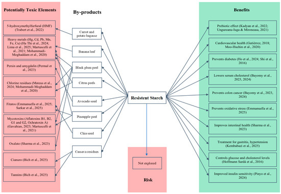 Duality of resistant starch from agro-industrial by-products: functional benefits vs. potential toxicological risks (Reference: [9,30,35,45,48,49,60,61,62,63,64,65,66,67,68,69,70,71,72,73]).