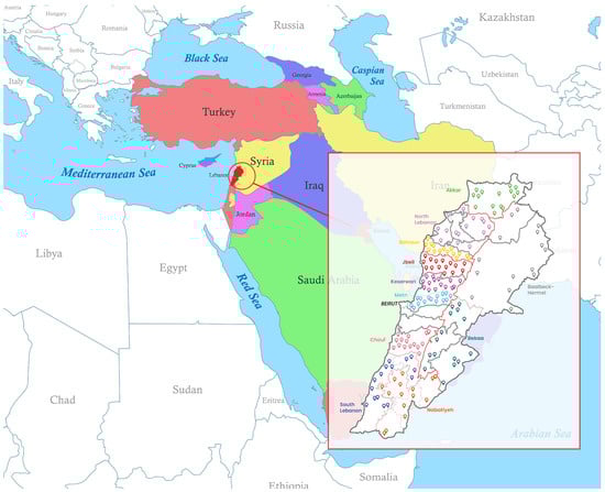 Figure 2 shows the location of the study regions in Lebanon and its location on the global map.