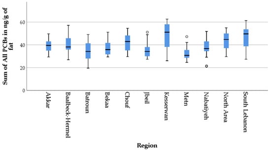 Box Plots of the Sum of All PCBS in yogurt samples from the various Lebanese regions.