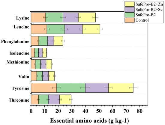 Particularly pronounced changes were observed in the samples with zinc addition, which showed the highest levels of leucine, lysine, threonine, and tyrosine (Figure 5).