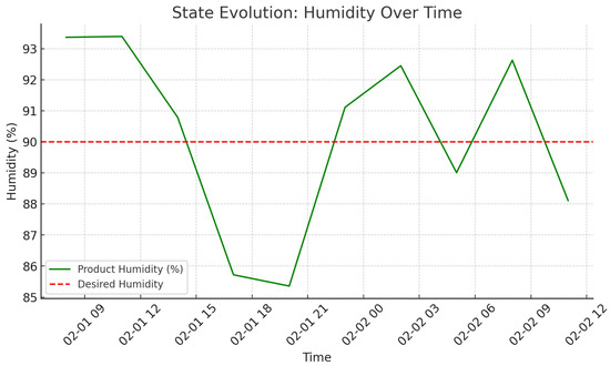 As shown in Figure 9, there is an increase in delivery rate as agents policies become closer to each other, i.e., better reliability of the system. It can be seen in Figure 10 and Figure 11 that the state of temperature and humidity, respectively, is stable and confirms that cold storage maintenance is successful. Figure 12 evaluates how the activities of agents affect environmental aspects.