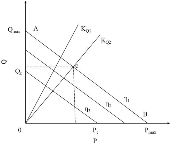 As shown in Figure 1, the die characteristic line KQ and screw characteristic line AB are plotted using Equations (7) and (8), respectively. Their intersection c denotes the extruder’s operating point, corresponding to die pressure Pc and volumetric flow rate Qc. With the die outlet pressure being 0, ΔP can be assumed equal to Pc. Solving these two equations simultaneously gives the solution derived from Equations (7) and (8) [26].