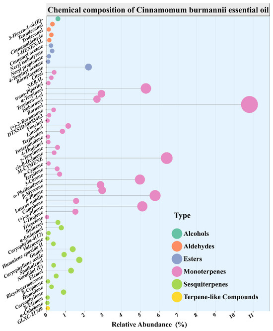 3.4.2. Detection of Essential Oil Compounds by Gas Chromatography-Mass Spectrometry