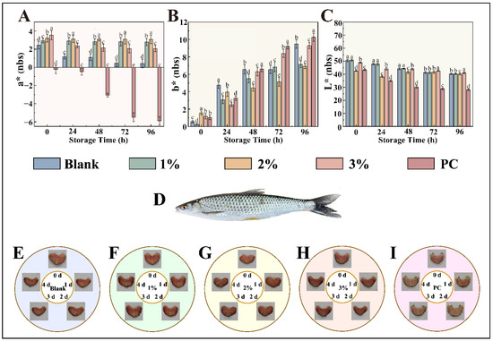 2.11. Changes in the Physicochemical Quality and Color Attributes of Squaliobarbus curriculus Filets Treated with Preservative Film and Microbiological Analysis