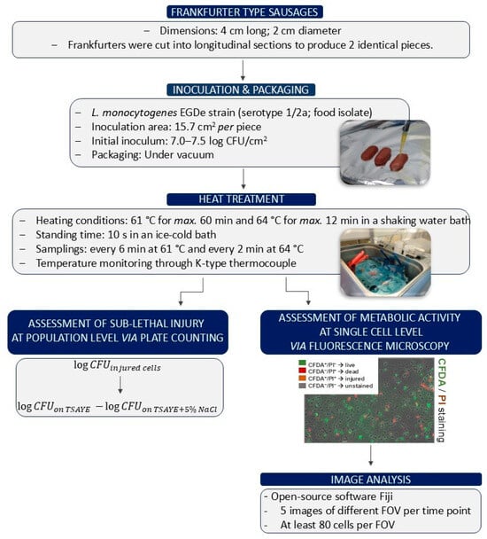Arvaniti, M.; Vlachou, E.; Kourteli, M.; Kapetanakou, A.E.; Skandamis, P.N. Monitoring Sublethal Injury in Listeria monocytogenes During Heat Treatment of Pork Frankfurter-Type Sausages: A Single-Cell vs. Population Level Approach. Foods 2025, 14, 3144. https://doi.org/10.3390/foods14173144
