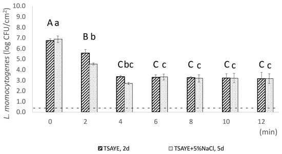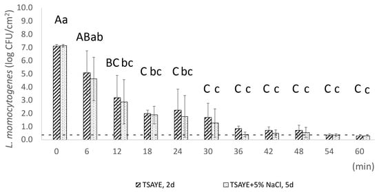 - Siderakou, D.; Zilelidou, E.; Poimenidou, S.; Tsipra, I.; Ouranou, E.; Papadimitriou, K.; Skandamis, P. Assessing the Survival and Sublethal Injury Kinetics of Listeria monocytogenes under Different Food Processing-Related Stresses. Int. J. Food Microbiol. 2021, 346, 109159. [Google Scholar] [CrossRef]