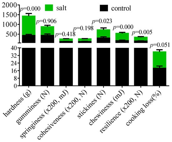 Figure 3. Flesh texture of fish (n = 6). p ≤ 0.05 indicates a significant difference.