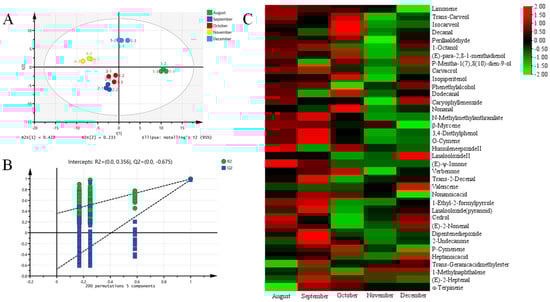 3.3.3. Effects of Harvesting Time on Aroma Compounds